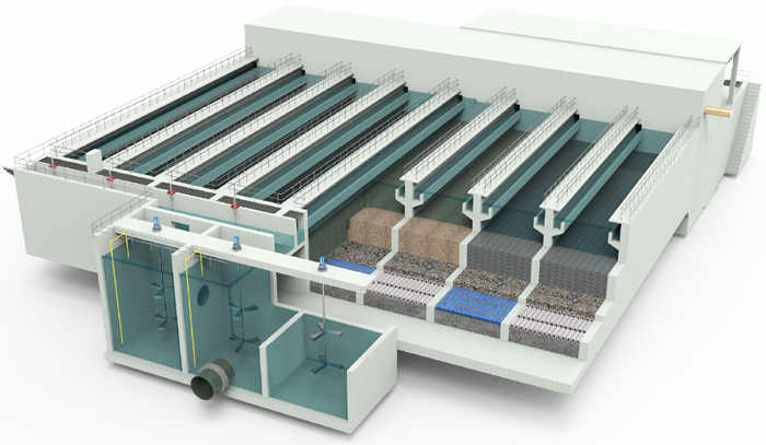 Debed深床反硝化濾池適用形式豐富,涵蓋土建、裝配式以及一體化等多種形式,被廣泛用于新建及改擴(kuò)建項(xiàng)目的深度處理單元,其高度集約化設(shè)計和科學(xué)結(jié)構(gòu)分析,最大程度節(jié)省資源,使產(chǎn)品適配更多的應(yīng)用場景,滿足客戶多樣化需求。