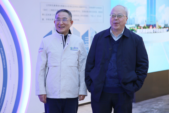 副董事長鄭俊陪同俞漢青院士(右)參觀展廳