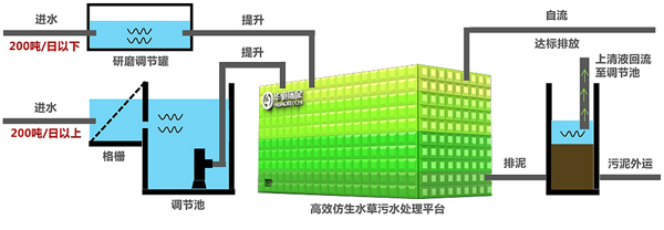“高效仿生水草污水處理平臺”是針對鄉(xiāng)鎮(zhèn)、農(nóng)村等中小型污水處理項(xiàng)目開發(fā)的,是脫氮除磷村鎮(zhèn)污水處理專利技術(shù)(專利號ZL201310179893.6)的良好應(yīng)用。該平臺改變了現(xiàn)有很多小型生活污水處理裝置雖然結(jié)構(gòu)上實(shí)現(xiàn)了一體化,但附屬設(shè)備多、結(jié)構(gòu)不緊湊、抗沖擊負(fù)荷差等缺點(diǎn)。