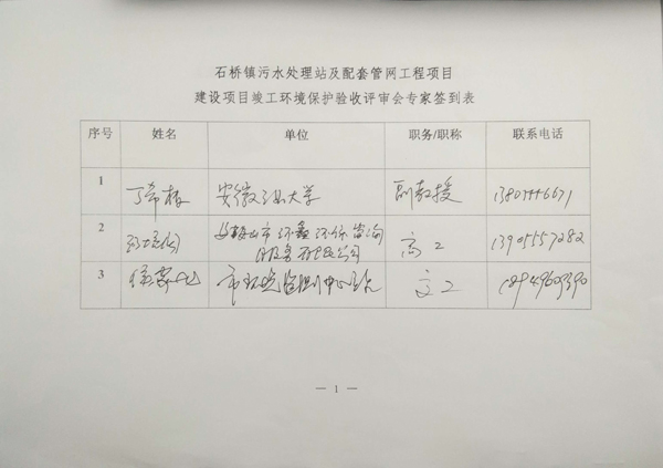 根據(jù)對當(dāng)涂縣石橋鎮(zhèn)污水處理站及配套管網(wǎng)工程項(xiàng)目的實(shí)地考察和調(diào)查,驗(yàn)收專家組認(rèn)為污水處理工程措施較完善,運(yùn)行工況滿足驗(yàn)收要求,目前已具備驗(yàn)收條件。