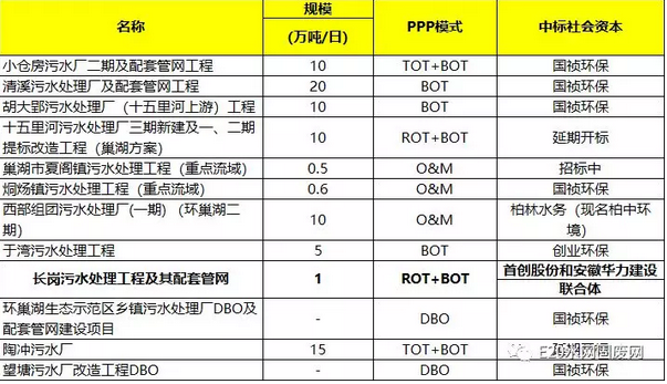 合肥市“十三五”期間已落地/招標(biāo)污水處理項(xiàng)目清單