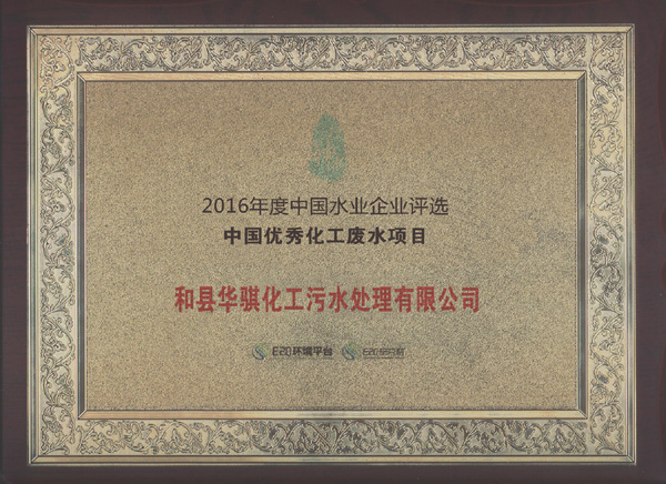 和縣華騏化工污水處理廠榮膺“中國優(yōu)秀化工廢水項目”