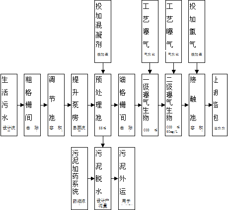 西城區(qū)污水處理廠的核心工藝是曝氣生物濾池,其它主體工藝有粗格柵間、調(diào)節(jié)池、預(yù)處理池、細(xì)格柵間、一級(jí)曝氣生物濾池、二級(jí)曝氣生物濾池、接觸池;輔助工藝有污泥處理間、鼓風(fēng)機(jī)房、加氯間。主要處理水質(zhì)指標(biāo)包括COD、BOD、NH3-N、TP、SS五項(xiàng)指標(biāo)。處理后污水的水質(zhì)要求達(dá)到GB 18918-2002《城鎮(zhèn)污水處理廠污染物排放標(biāo)準(zhǔn)》中的一級(jí)B類標(biāo)準(zhǔn)。