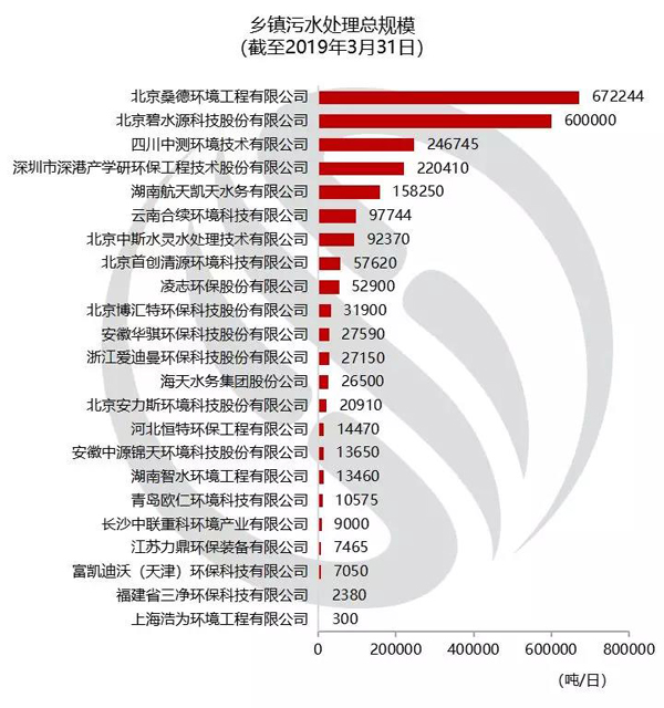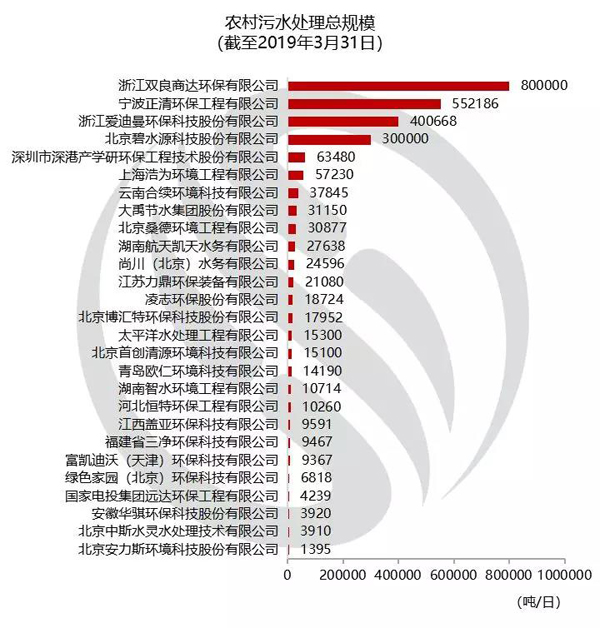 備注:該排名為企業(yè)中標(biāo)簽約且參與項(xiàng)目運(yùn)營維護(hù)的農(nóng)村污水處理項(xiàng)目設(shè)計(jì)能力加總。