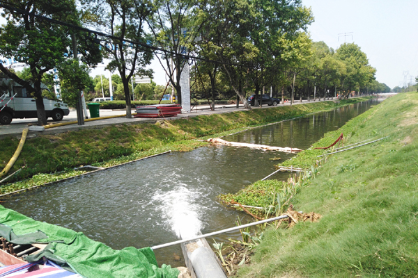 第一天下午4點(diǎn),業(yè)主通知2套日處理水量3000噸的車載魔方磁進(jìn)場(chǎng)。第二天上午,安裝調(diào)試人員到現(xiàn)場(chǎng)踏勘,當(dāng)天晚上完成2套車載設(shè)備就位(考慮到設(shè)備長(zhǎng)期定點(diǎn)使用,設(shè)備從車上卸載到臨時(shí)澆筑的基礎(chǔ)平臺(tái))。第三天上午,完成全部管道與設(shè)備接電(采用車載式魔方磁標(biāo)配的發(fā)電機(jī)供電),下午一點(diǎn)魔方磁進(jìn)水,經(jīng)過(guò)20分鐘調(diào)試后出水清澈,隨后設(shè)備持續(xù)運(yùn)行,河道水逐漸變清,持續(xù)運(yùn)行12小時(shí)后,整個(gè)河道迅速實(shí)現(xiàn)化濁為情的蛻變。