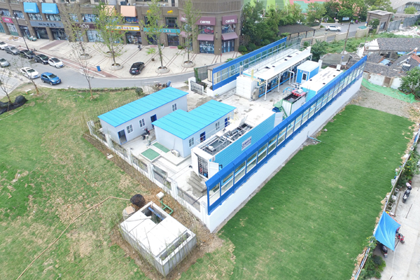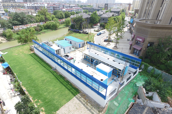 南京市浦口區(qū)南河流域凈水活水工程林公堤站點(diǎn),處理規(guī)模2000m3/d,采用我司研發(fā)的Rapid-Move黑臭水體旁路處理系統(tǒng)——“魔方磁+魔方尊”組合工藝產(chǎn)品,從城南河西支沿河污水井和場站西側(cè)污水排口取水,提升至場站處理凈化達(dá)標(biāo)后補(bǔ)水至上游西門橋處,作為河道補(bǔ)水水源。出水主要指標(biāo)達(dá)到《地表水環(huán)境質(zhì)量標(biāo)準(zhǔn)》(GB3838-2002)Ⅴ類水標(biāo)準(zhǔn),其中氨氮達(dá)到IV類水標(biāo)準(zhǔn)。