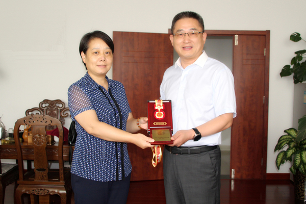 今日上午,在中華人民共和國成立70周年之際,馬鞍山市科學(xué)技術(shù)局局長王焰一行代表市政府來到安徽華騏環(huán)??萍脊煞萦邢薰?,為華騏環(huán)保副董事長兼總工程師鄭俊送來由中共中央、國務(wù)院、中央軍委頒發(fā)的“慶祝中華人民共和國成立70周年紀(jì)念章”。