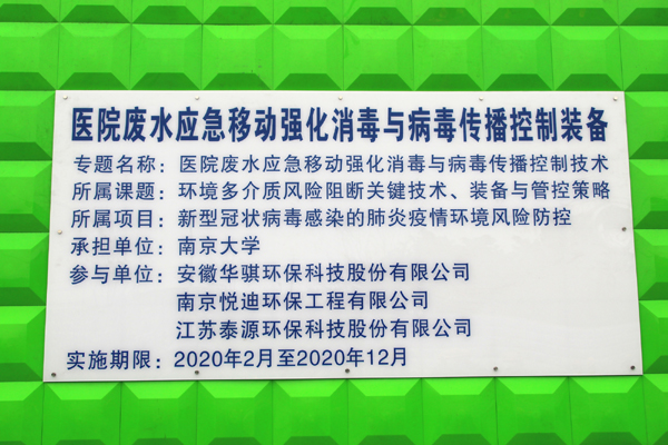 專題概況:由國家科學(xué)技術(shù)部、中國工程院立項(xiàng)的“新型冠狀病毒感染的肺炎疫情環(huán)境風(fēng)險(xiǎn)防控”之“醫(yī)院廢水應(yīng)急移動強(qiáng)化消毒與病毒傳播控制技術(shù)”專題,由南京大學(xué)牽頭承擔(dān),安徽華騏環(huán)??萍脊煞萦邢薰緟⑴c主要裝備研發(fā)和生產(chǎn)。