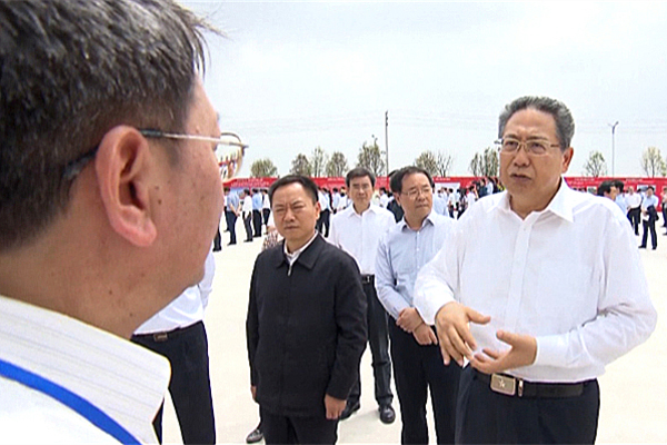 省委書記李錦斌(右一)與華騏環(huán)保董事長王健交談