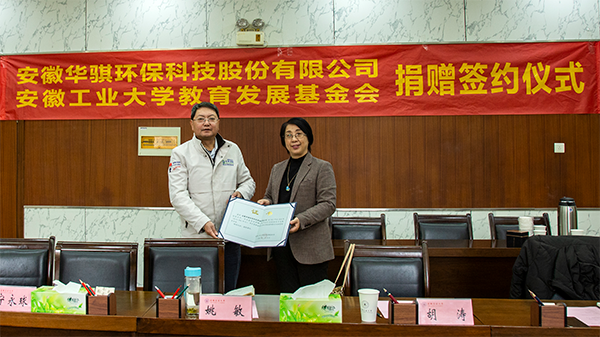 2022年1月14日,安徽華騏環(huán)保科技股份有限公司與安徽工業(yè)大學(xué)戰(zhàn)略合作簽約儀式在安徽工業(yè)大學(xué)會議中心舉行。華騏環(huán)保董事長王健,副總胡一強(qiáng)、費(fèi)煜青,安工大副校長顧明言,校友處處長、教育發(fā)展基金會秘書長甘亞,體育部黨總支書記、主任胡濤,工會主席姚敏,學(xué)生工作部(處)處長何偉,團(tuán)委書記王菁,校友工作處副處長、教育發(fā)展基金會副秘書長寧永球,體育部副主任程小坡出席了簽約儀式。體育部副主任李艷主持本次簽約儀式。此次簽約旨在為支持安徽工業(yè)大學(xué)教育事業(yè)的發(fā)展,支持安徽工業(yè)大學(xué)校園科技文化體育活動。