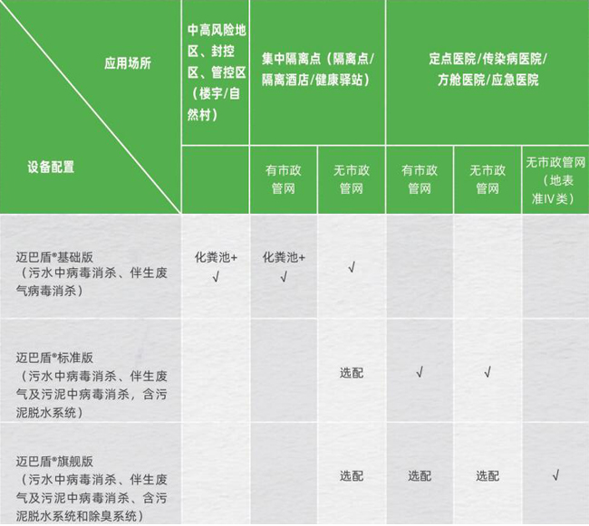 在邁巴盾®基礎(chǔ)版上增加了伴生廢氣中氣溶膠病毒和伴生污泥中病毒的全面消殺,并包含污泥脫水系統(tǒng)。消殺后相關(guān)指標(biāo)可達(dá)到《醫(yī)療機(jī)構(gòu)水污染物排放標(biāo)準(zhǔn)》(GB18466-2005)要求及《醫(yī)學(xué)隔離觀(guān)察設(shè)施設(shè)計(jì)標(biāo)準(zhǔn)》和《新型冠狀病毒感染的肺炎傳染病應(yīng)急醫(yī)療設(shè)施設(shè)計(jì)標(biāo)準(zhǔn)》(T/CECS661-2020)。