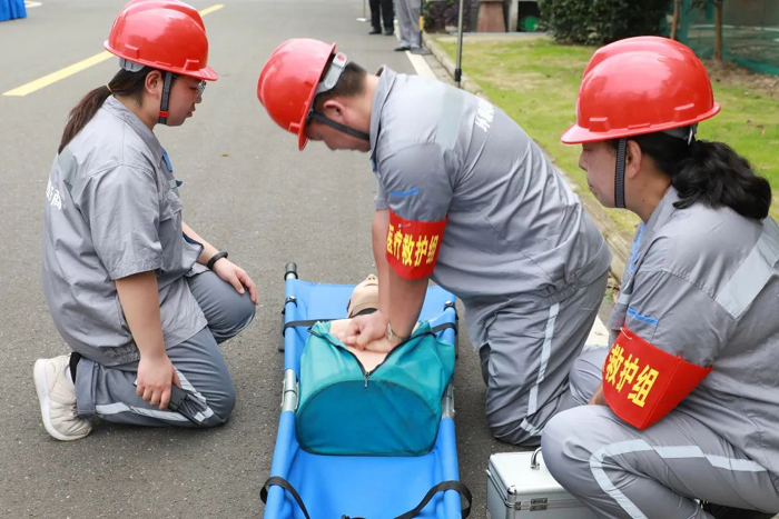 當(dāng)天下午2點,演練正式開始。演練場景模擬華騏污水廠磁混凝沉淀池污泥泵房內(nèi)員工在處理污泥泵出口壓力不正常過程中,未遵守作業(yè)規(guī)程,違規(guī)摘掉正壓送風(fēng)長管呼吸器,吸入有毒氣體后中毒暈倒?,F(xiàn)場人員發(fā)現(xiàn)后立即上報公司領(lǐng)導(dǎo),經(jīng)理趕赴事故發(fā)生區(qū)域,成立現(xiàn)場指揮部,啟動《有限空間作業(yè)事故專項應(yīng)急預(yù)案》,應(yīng)急救援人員穿戴正壓式空氣呼吸器,攜帶擔(dān)架深入污泥泵房將受傷人員救出;醫(yī)療救護人員對中毒人員進行心肺復(fù)蘇,救援的同時撥打 120 急救電話進行醫(yī)療救護求助。最終在各單位的全力配合下,圓滿完成此次應(yīng)急救援任務(wù)。