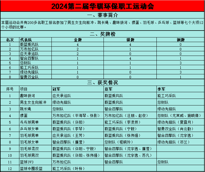 附:2024第二屆華騏環(huán)保職工運(yùn)動會獎牌榜